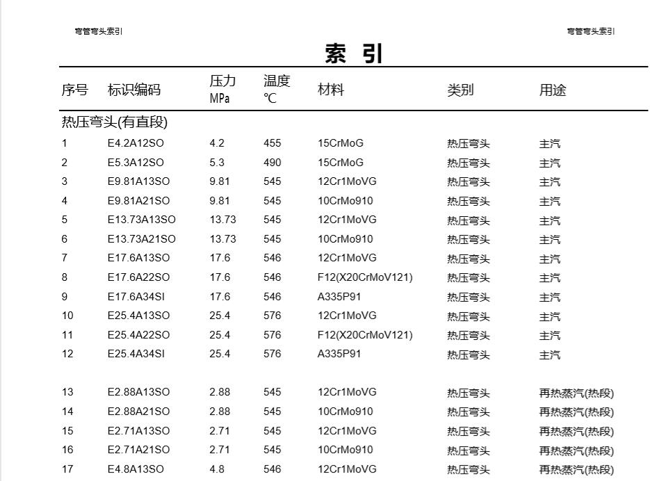 這類的材質沒有什么太大的變化,彎頭產品也就是這樣的幾類的材質,而它的一個像還有一個地方,就是它的半徑尺寸不一樣,半徑尺寸不一樣,這個很重要的不是說這個產品就可以普通用普通的方式來進行生產,而是說你得生產完了之后他的這個半徑,你得跟他的書本上相對應,不然的話人家為什么非得提出這個標準。電力標準彎頭產品中有帶有直管段的,也有不帶的,里面的材質也是寫的明白。